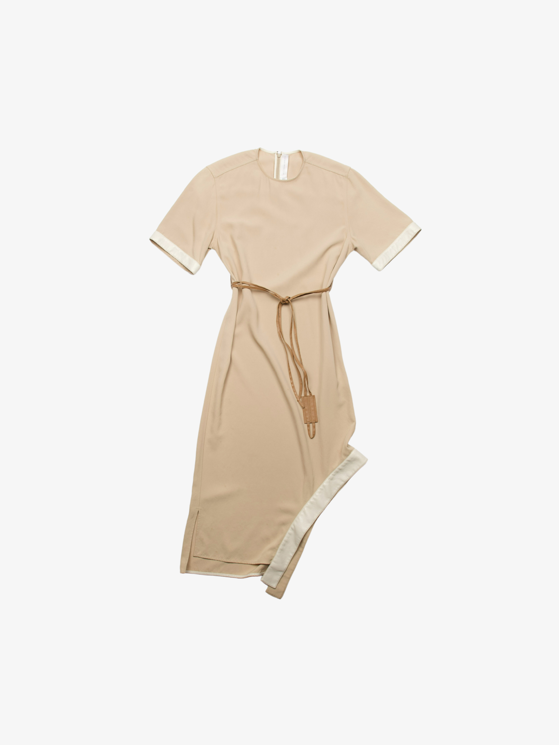 BIAS CUT LONG DRESS WITH LEATHER BELT