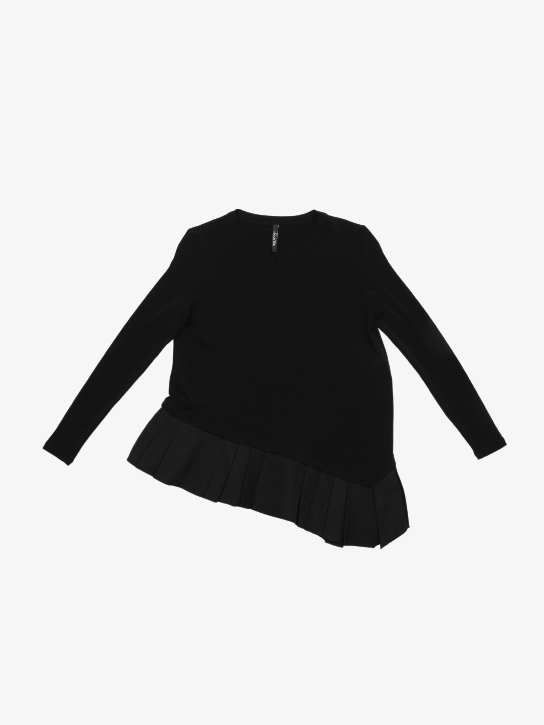 ASYMMETRICAL PLEATED HEM LONG SLEEVE TOP