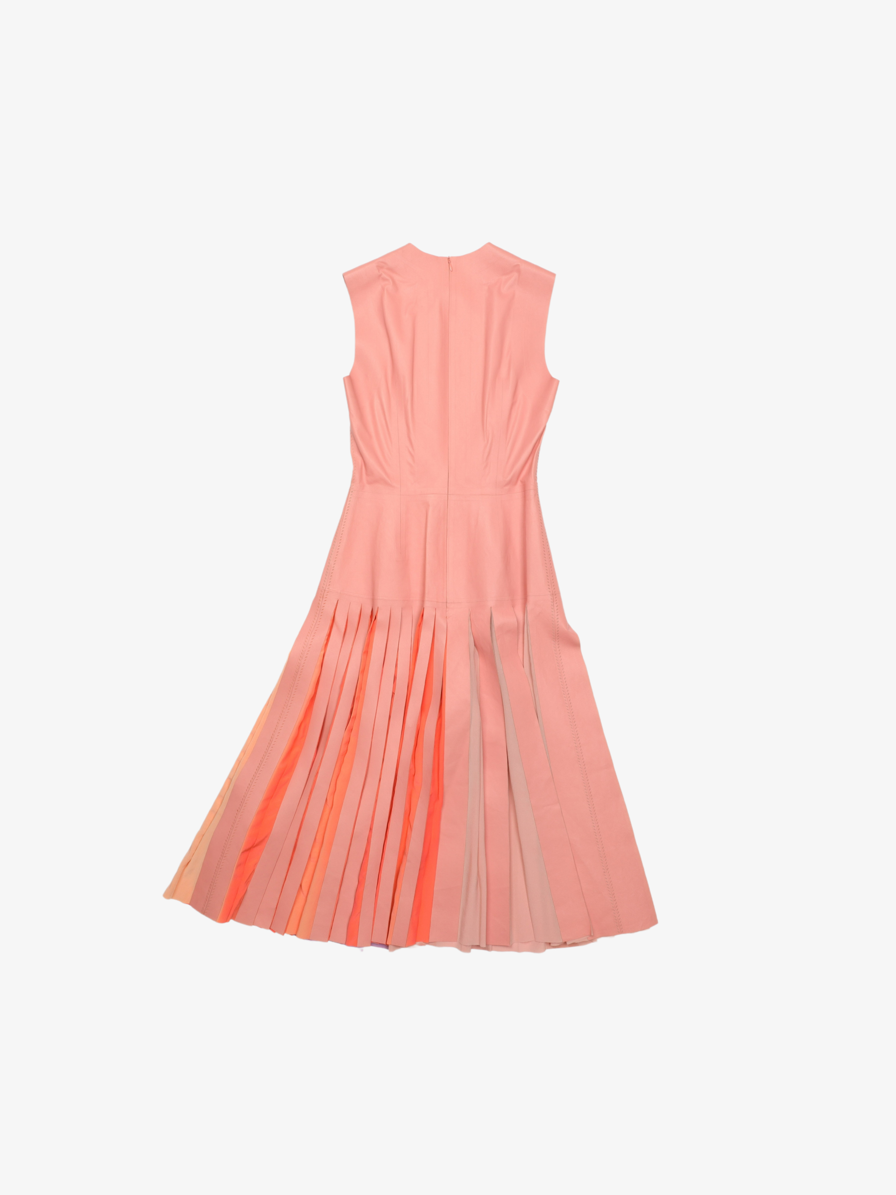 LEATHER SLEEVELESS DRESS WITH PLEATS POINT