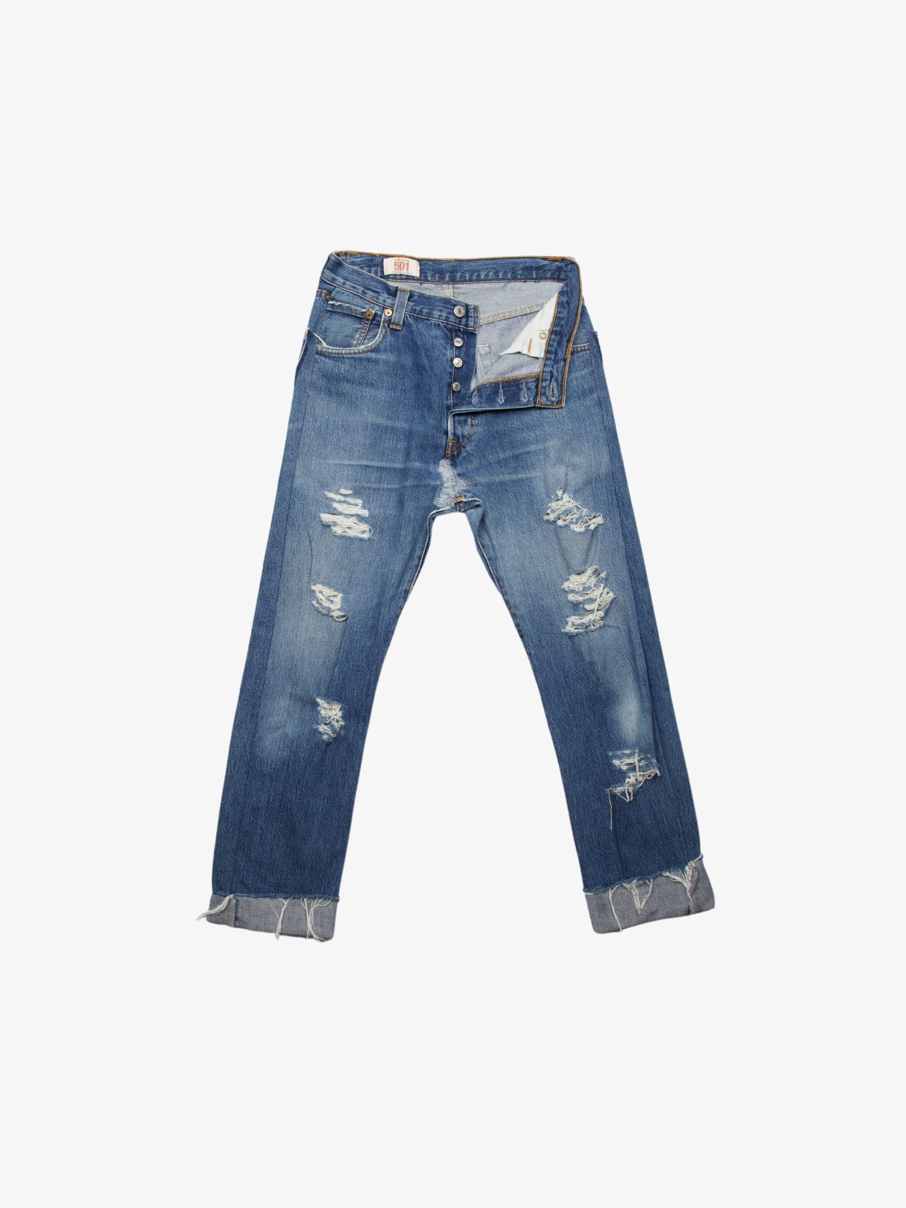 501 STRAIGHT LEG BUTTON-FLY DAMAGED JEANS