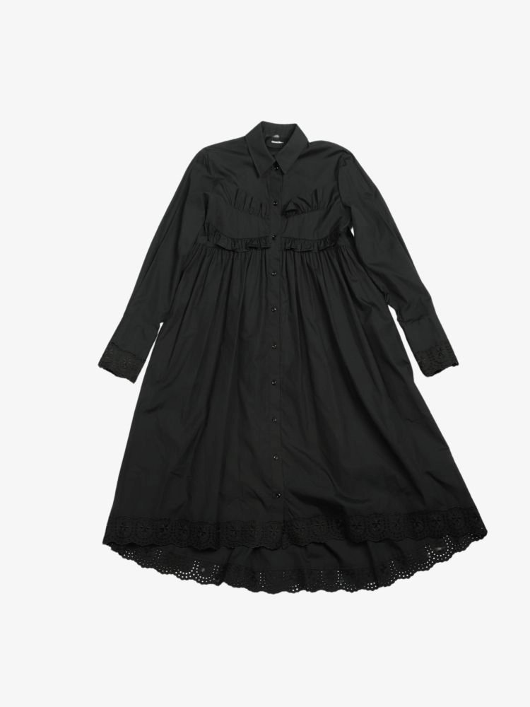 SHIRT LONG DRESS WITH RUFFLE CHEST AND LACE HEM