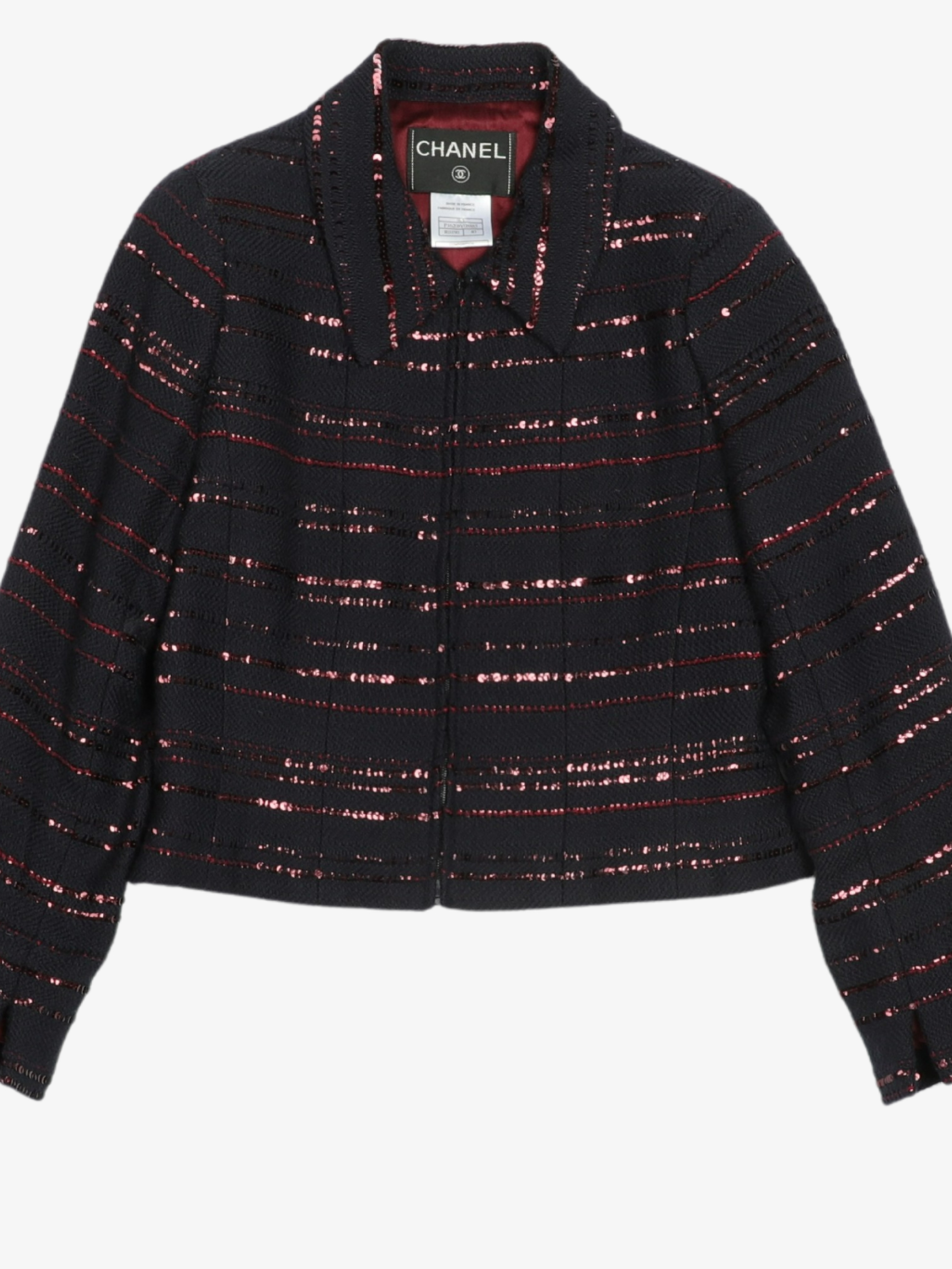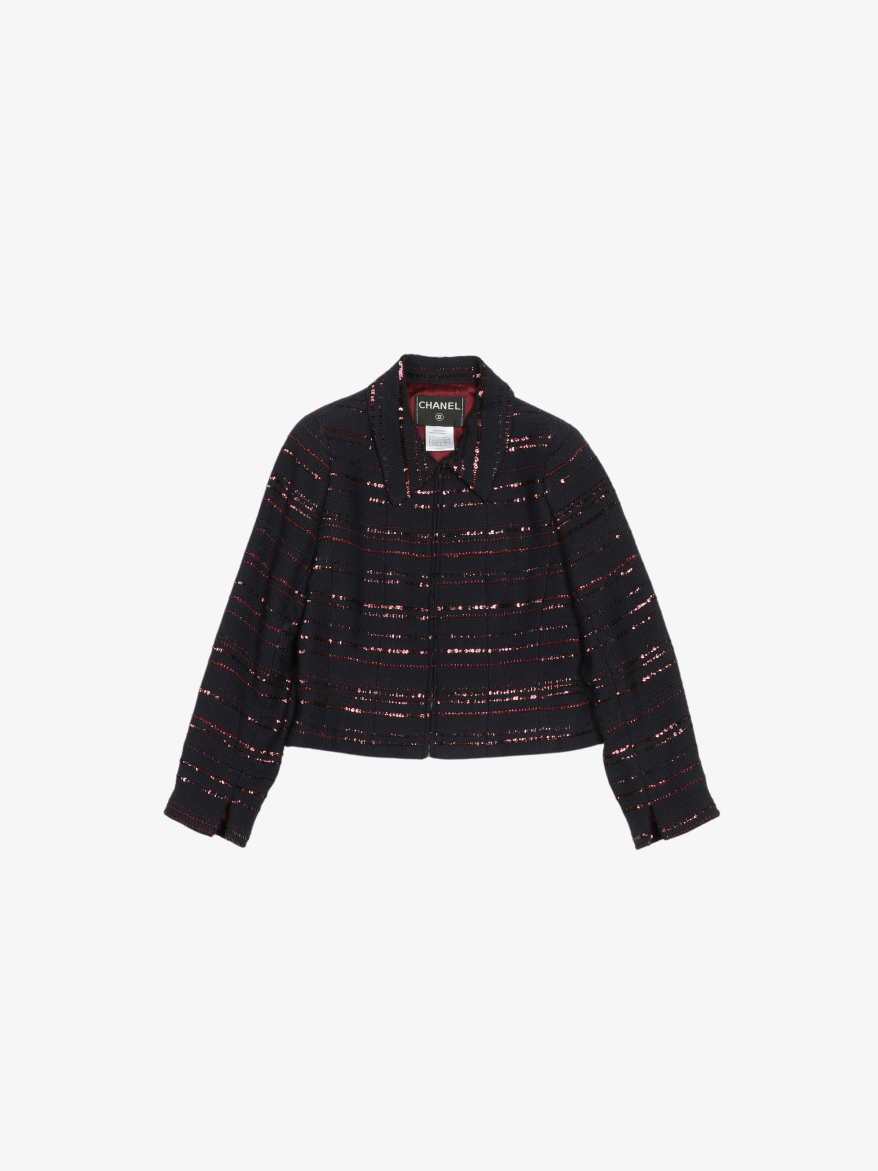SEQUINED STRIPE ROUND ZIPPED JACKET